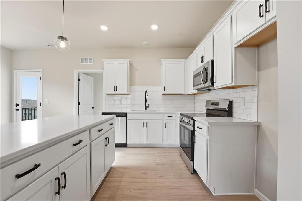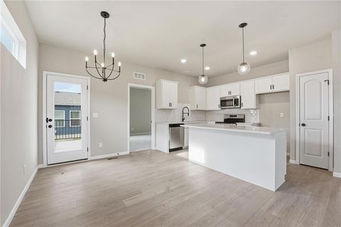 Move In Ready! Welcome to The Wynn by Ashlar Homes! This stunning Craftsman-style ranch offers effortless one-level living with 3 bedrooms and 2 baths, blending modern luxury with timeless charm. The open-concept design features luxury finishes throughout, including a large kitchen island, quartz countertops, a tile backsplash, and LVP flooring in the great room, kitchen, and dining areas. The primary suite boasts a bath with a tiled shower and tile flooring. Enjoy outdoor living on the covered patio. Additional upgrades include garage door openers for convenience. Located in a vibrant amenity-rich community, residents enjoy access to a pool, playground, firepit, and upcoming pickleball & basketball courts plus frisbee golf!
